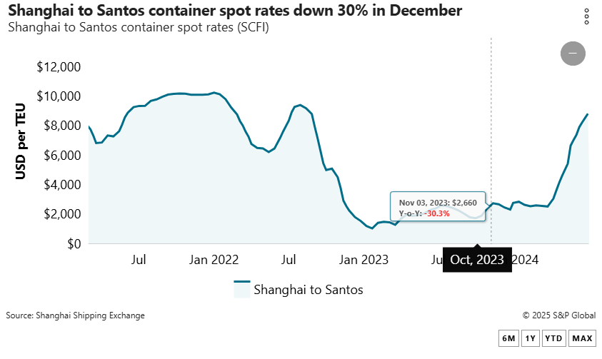 “Our Chinese agents have been warning us that the rates should go up in early January,” Mauricio Fisch, director of Brazil freight forwarder Ocean Express, told the Journal of Commerce.