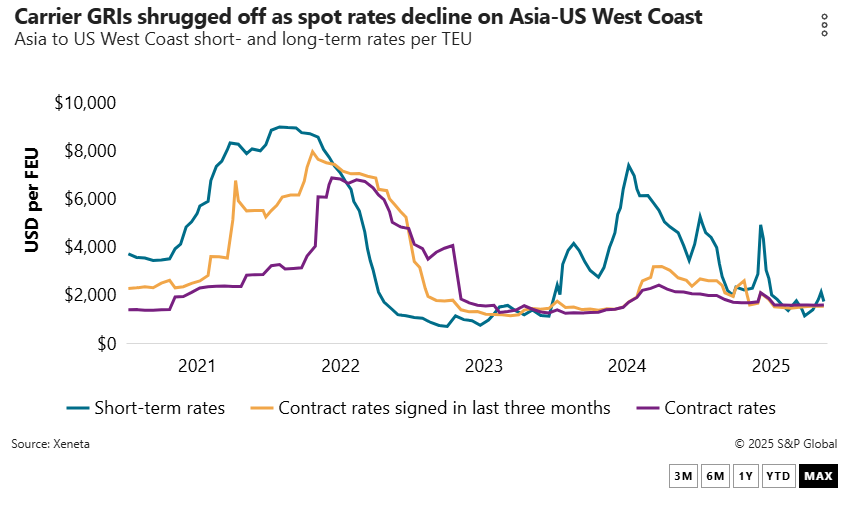 Alphaliner 高级分析师 Stefan Verberckmoes 指出,亚欧涨价效果更明显,是因为班轮公司正在与欧洲长期合约客户展开重新谈判,而美线年度合约普遍从明年 5 月重新起算。